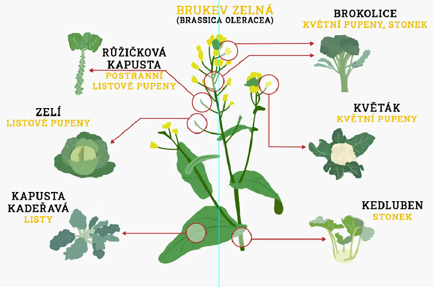 Brukev zelná (Brassica oleracea) by se dala řadit mezi opravdu super rostliny. Postupným šlechtěním lidé z této rostliny vyšlechtili několik druhů zelenin. Záleží jen na tom, pro kterou konkrétní část byla rostlina šlechtěna. Zda-li pro květ, stonek nebo list.
