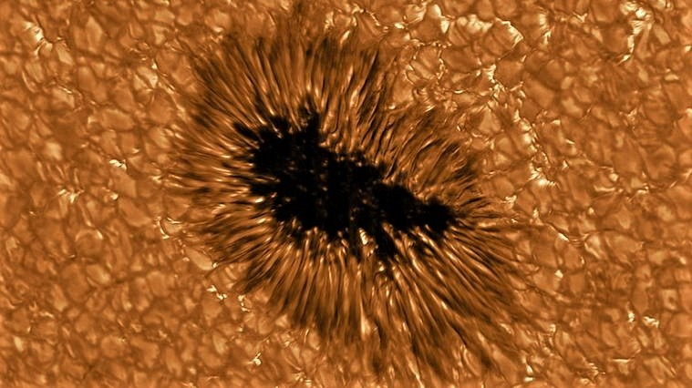 Skvrny na Slunci, které teleskop dokáže zachytit vypadají jako díra do hvězdy samotné. Nicméně se jedná spíše o anomálii v magnetickém poli Slunce. Jsou to velmi magneticky silná místa, ze kterých vycházejí siločáry, které se rovnou i vracejí. Tak vzniká vzor, který vidíte na snímku.