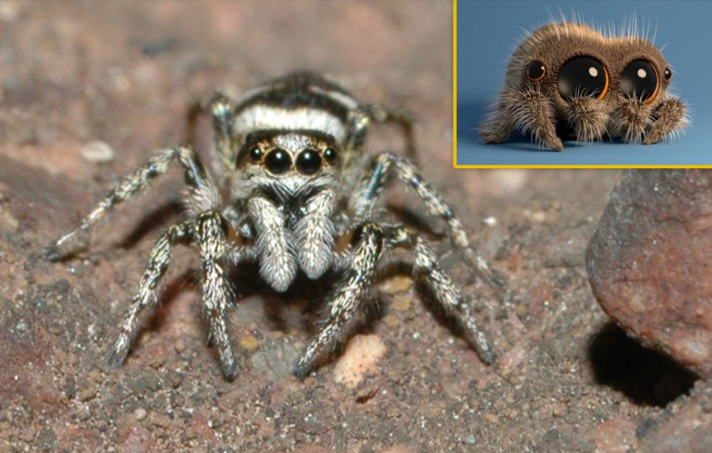 Na fotce - toho víc cute pavoučka možná znáte jako spider Lucas (pavouk Lukas). Jeho předlohou byla neméně roztomile vypadající skákavka pruhovaná (Salticus scenicus).