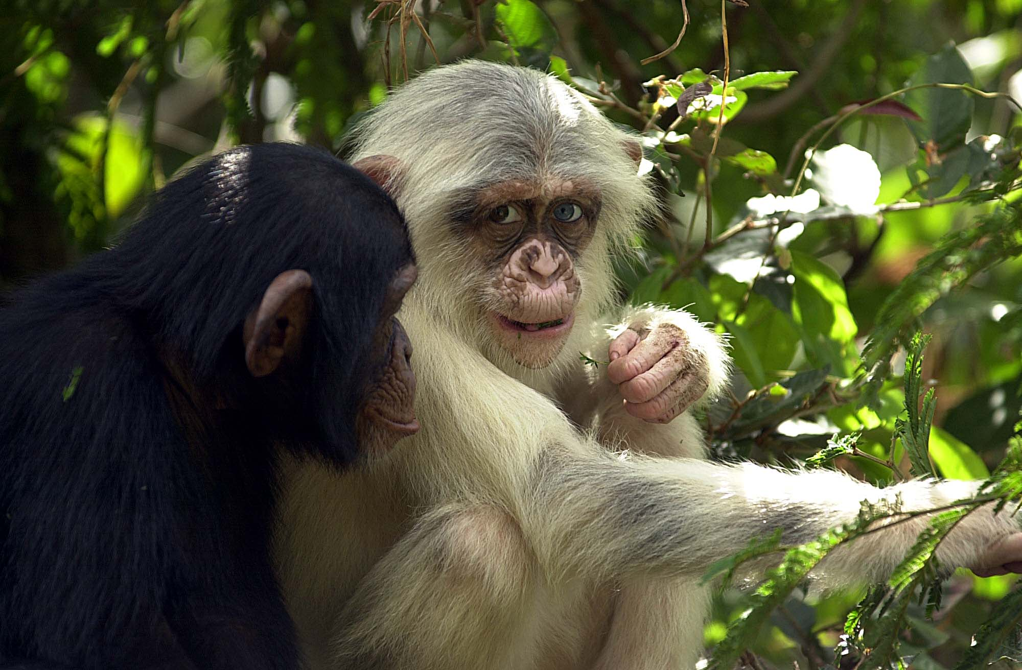 Bílý šimpanz ve společnosti běžně zbarveného. Zdroj