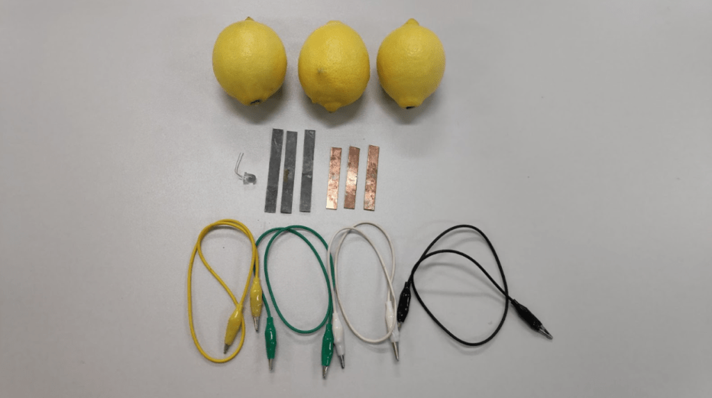 Jednoduchý experiment k seznámení se s principem jednoduchého galvanického článku. Pomocí citronů a dvou kovů si vyrobíme baterii, která nám bude napájet LED diodu. Ta bude krásně svítit aniž bychom do obvodu zapojili jakýkoli jiný zdroj elektrické energie.