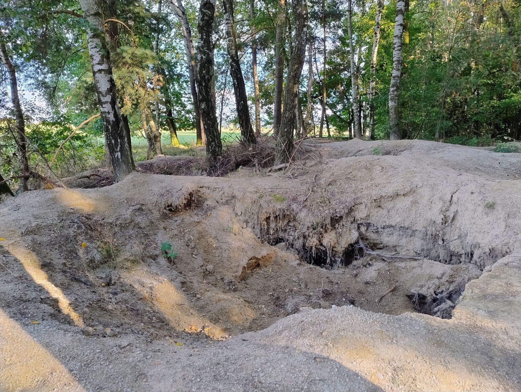 Typické naleziště, kompletně podkopaný les po ilegální těžbě.