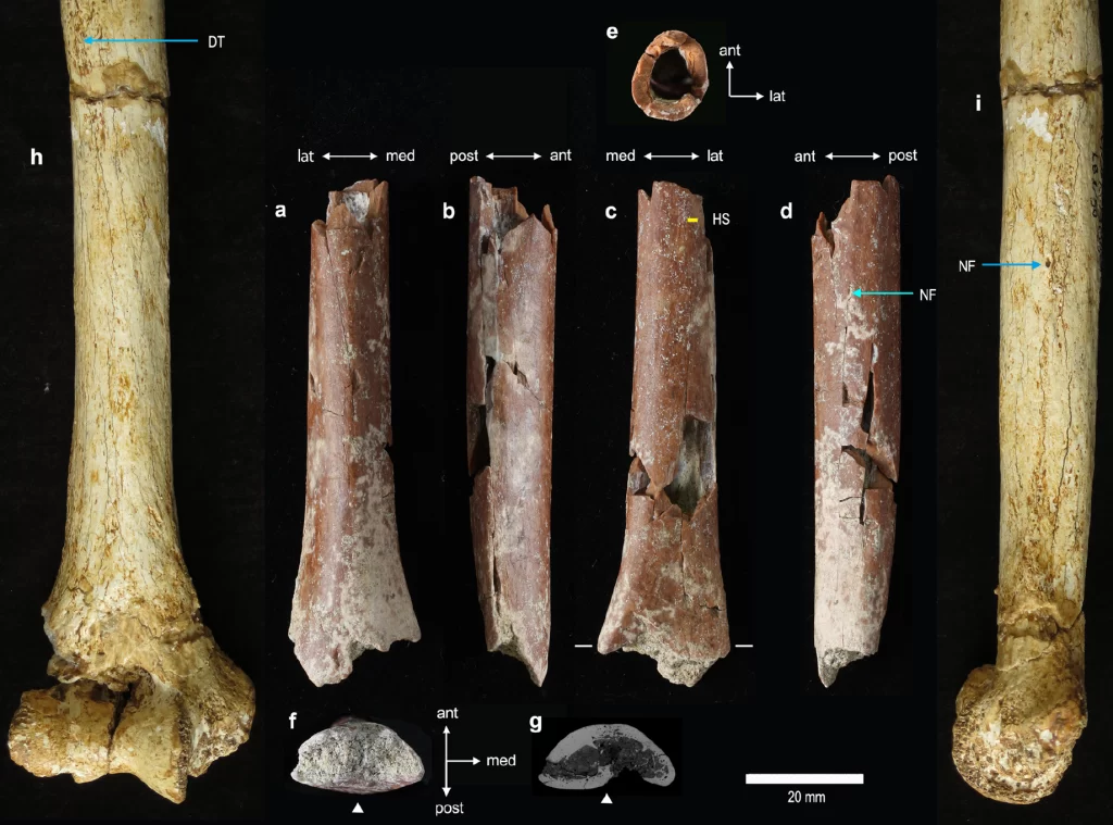 Pažní kost z Mata Menge z různých úhlů. Zdroj: Nature Communications