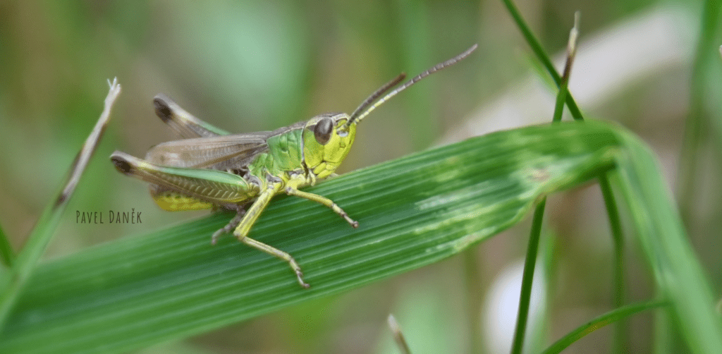 Pokud se vám nechce zrovna zkoumat, jestli si vámi pozorovaný tvoreček pochutná spíše na broukovi, nebo na fialce, pomůže vám anatomie. Kobylky poznáte na první pohled podle dlouhých nitkovitých tykadel (foto níže). Pamatovat si to můžete tak, že by se na kobylce dalo jezdit, protože se dá za tykadélka chytit, i když sedíte na jejím hřbetě. Naopak saranče má krátká tlustá tykadla, na která byste rozhodně ze zad saranče nedosáhli. Právě podle tykadel poznáte rozdíl na první pohled.