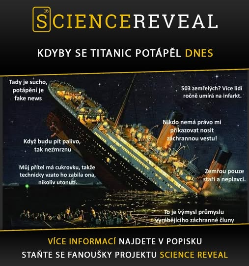 S projektem Science Reveal tak chceme vyrazit do boje proti dezinformacím a hledáme formáty, které by se naladily právě na příznivce dezinformačních webů. Rádi bychom tedy požádali vás naše fanoušky o spolupráci. Pokud byste se do tohoto boje chtěli s námi zapojit, napište nám do zpráv. Můžete se zapojit jak svými nápady, tak i svou vlastní aktivitou. Máme dnes přes 20 000 sledujících (s dosahem k 1 milionu lidí týdně) a máme spřízněné stránky s podobným i větším dosahem. A věříme, že pokud se nám podaří internetový prostor zaplnit podloženými informacemi a naučíme lidi kritickému myšlení a ověřování dat, zvláště těch, které hrají do noc našemu názoru, tak ještě budeme mít šanci vrátit se do věku informačního. Jdete do toho s námi? Napište nám!