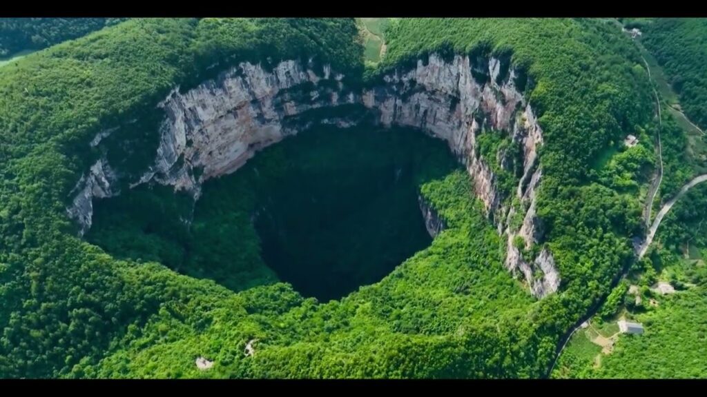 Xiaozhai Tiankeng je pravděpodobně největším tzv. závrtem na Zemi. Celý útvar je krasového původu a pod závrtem hlubokým 662 metrů se skrývá navíc jeskyně s podzemní řekou dlouhou přes 8 km která na svém ústí tvoří obrovský 46 metrů vysoký vodopád.