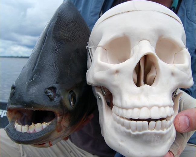 Zajímavé na téhle rybě jsou její zuby, které připomínají lidské stoličky. Ryba sama se totiž živí všežravě - včetně rostlinné stravy, je tedy pro ni výhodnější mít univerzálnější zuby než jejich příbuzné piraně, které se specializují na trhání.