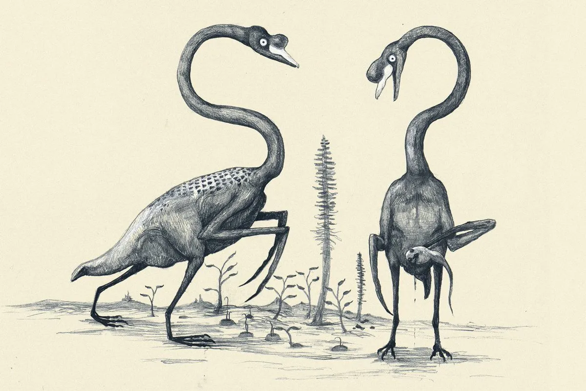 Jednalo by se o opravdu hrůzostrašné tvory, kteří na své pařáty napichují své kořisti. Nikdo by si nepředstavil elegantního bílého opeřeného tvora, který pluje po jezeře. Peří by se totiž nezachovalo, stejně tak jako různé blány apod.